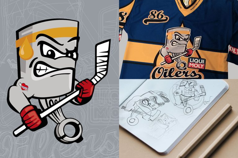 Vom Scribble zur finalen Figur: Ein technisches Objekt (Kolben) wird in ein eigenständiges Charakterdesign übersetzt – mit klarer Formsprache und erzählerischem Ansatz.