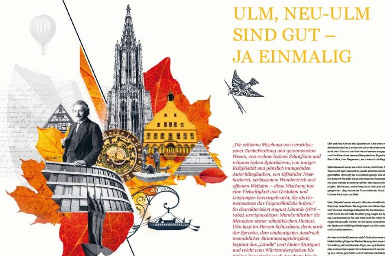 Regelmäßig erscheinende Collagen mit regionalem Bezug (Ulm/Neu-Ulm), die sich visuell und farblich jeder Ausgabe anpassen. Ergänzt durch eigens entwickelte Piktogramme für die Titelgestaltung.